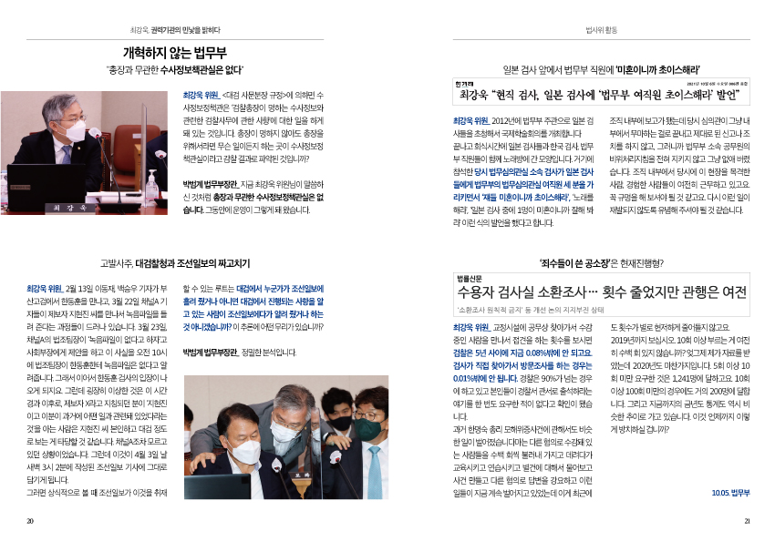 2021년 의정보고서 | 최강욱, 권력기관의 민낯을 밝히다(법사위 활동)
