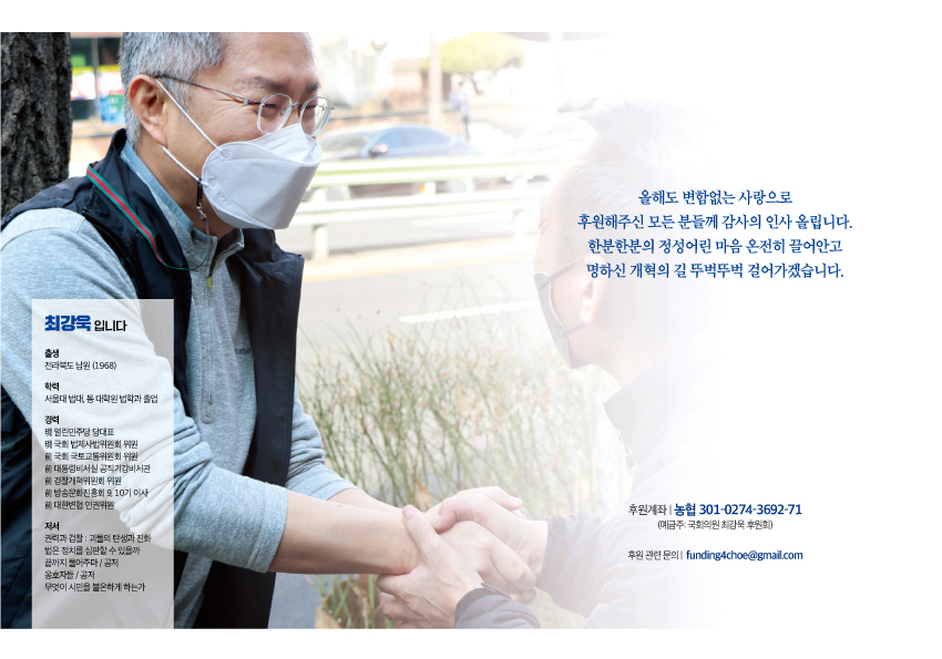 후원계좌: 농협 301-0274-3692-71(예금주: 국회의원 최강욱 후원회)
